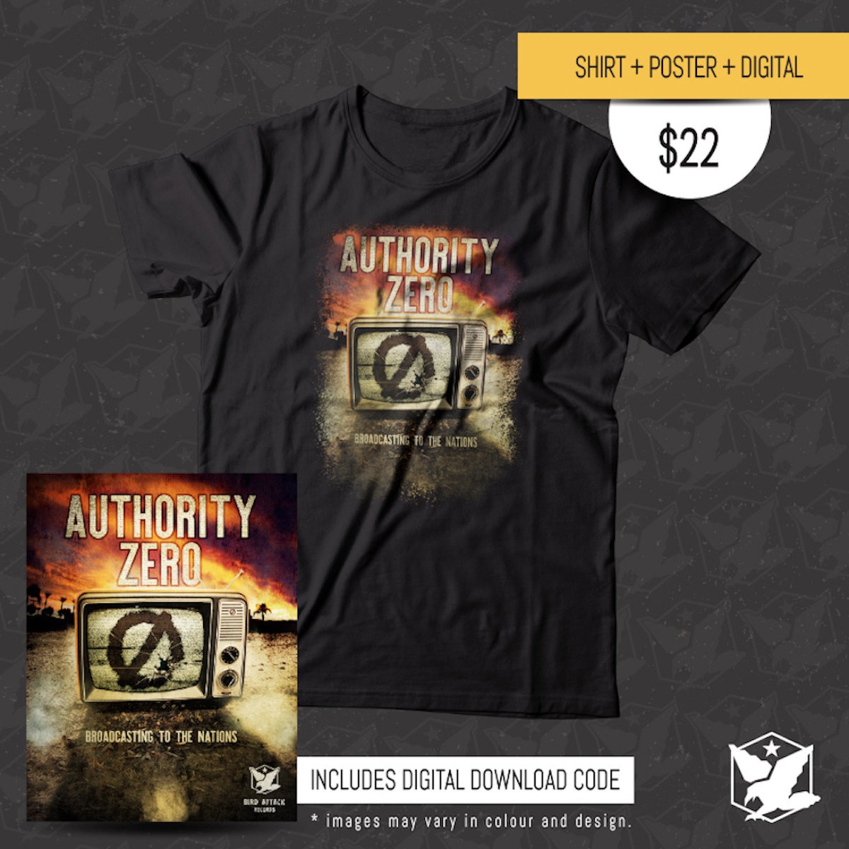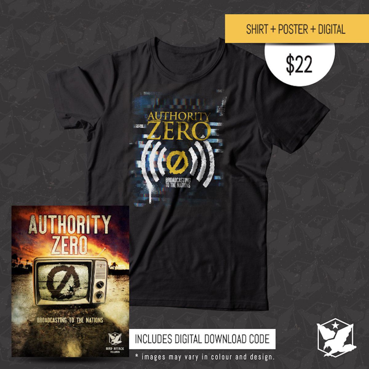 Authority Zero Broadcasting Shirt + Album Cover Shirt + Poster + Digital Download